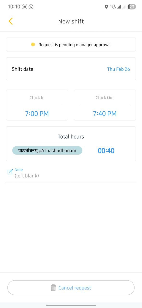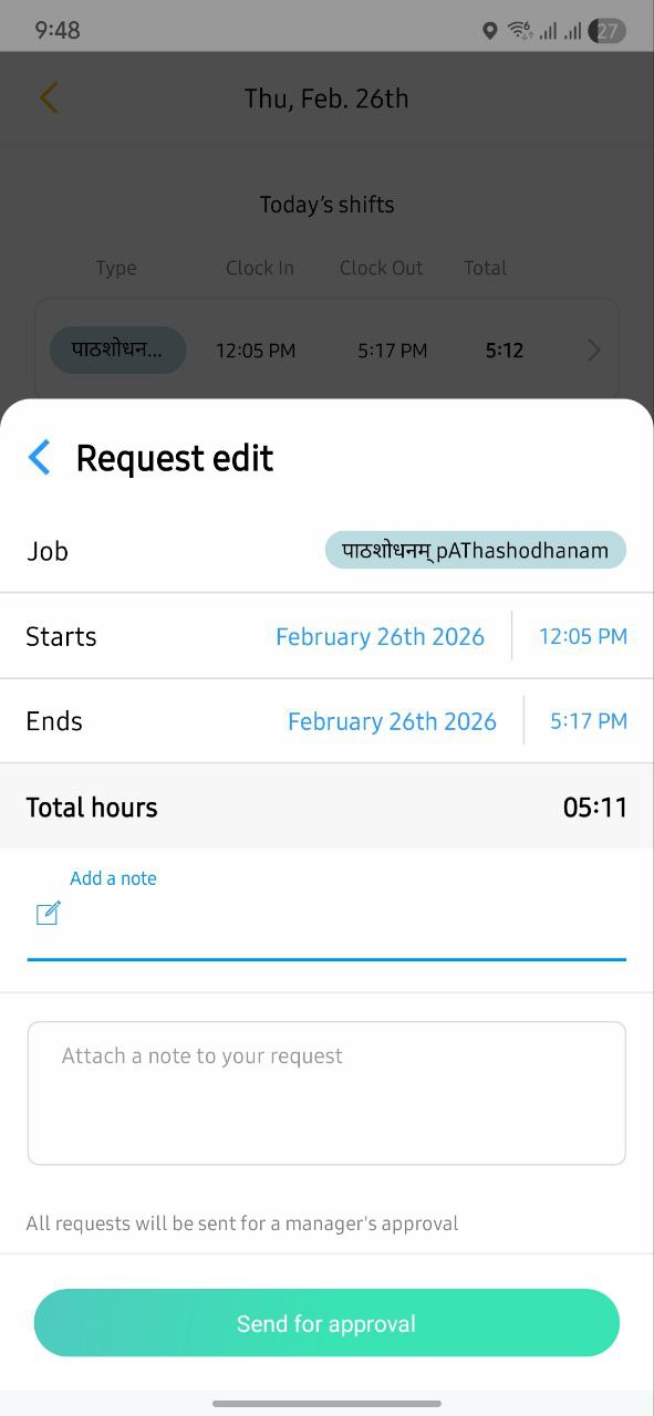 यत् कार्यं कृतम्, तत्-कालम् अपि add shift इति कृत्वा प्रेषयतु।